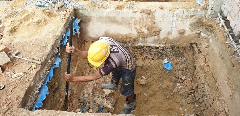 Kerja-kerja pembinaan longkang U-Drain, pemasangan Formwork dan besi-besi serta kerja kerja mengikat batu bata di bilik generator set, tingkat bawah berjalan seperti biasa.