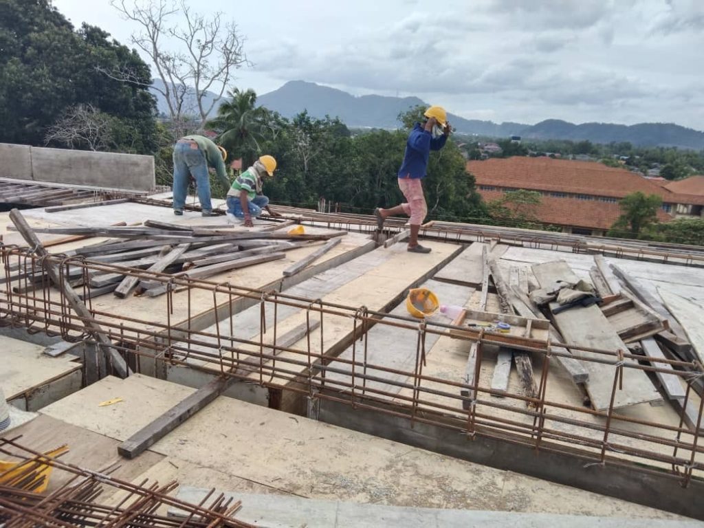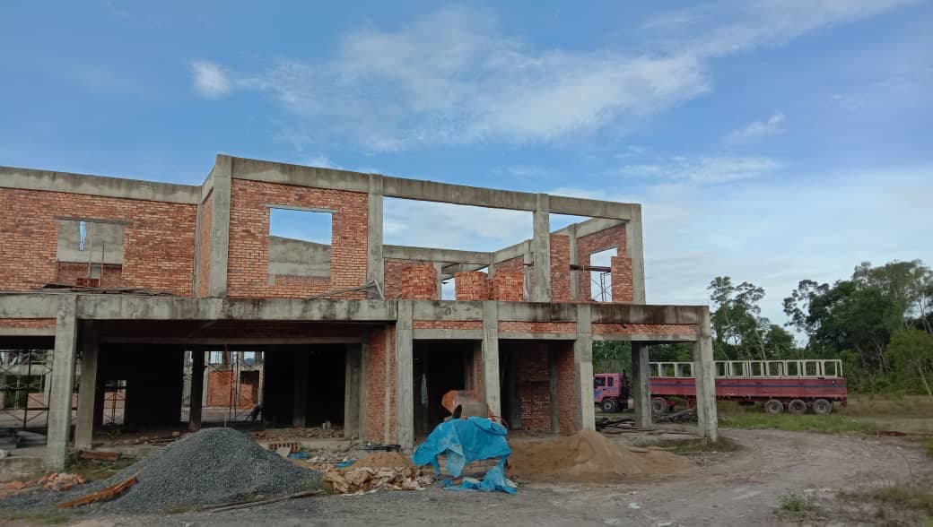 1- Pembinaan tingkat atas beserta struktur bumbung dan dinding yang masih belum selesai. Hal ini termasuklah, bahagian saluran paip air hujan dan bahagian wayar bangunan bagi pendawaian elektrik.